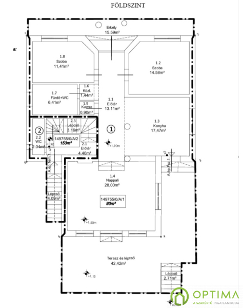- konyha + 28 m²-es nappali