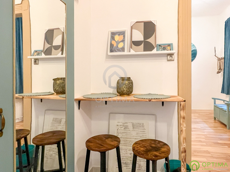 Ez a 32 m²-es, földszinti lakás valódi különlegesség: művészi szemlélettel megtervezett, harmonikus és karakteres élettér, ahol minden részlet tudatosan illeszkedik egymáshoz. Nem sablonlakás, hanem egy önálló világ – azoknak, akik értékelik az egyediséget.