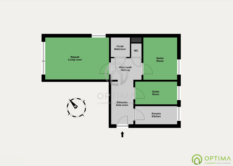 • nappali + 2 hálószoba, praktikus elrendezéssel